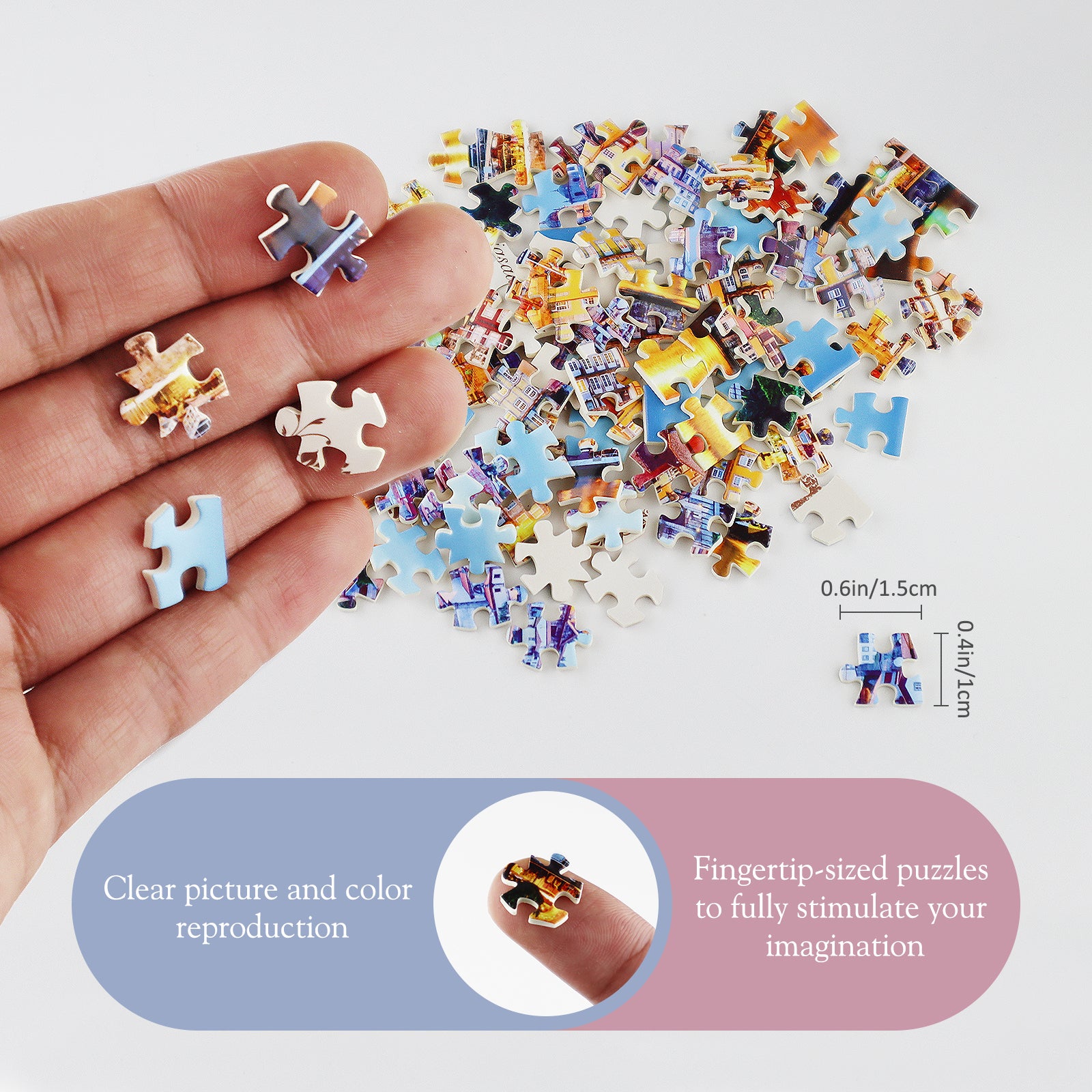 -This 3-Pack puzzle contains 3 pcs separate test tube packaging, each puzzle with 150 pieces. Each piece puzzle is smaller than your finger. It could provide you hours of fun and entertainment piecing this incredible jigsaw puzzle together, an ideal pastime for everyone to enjoy