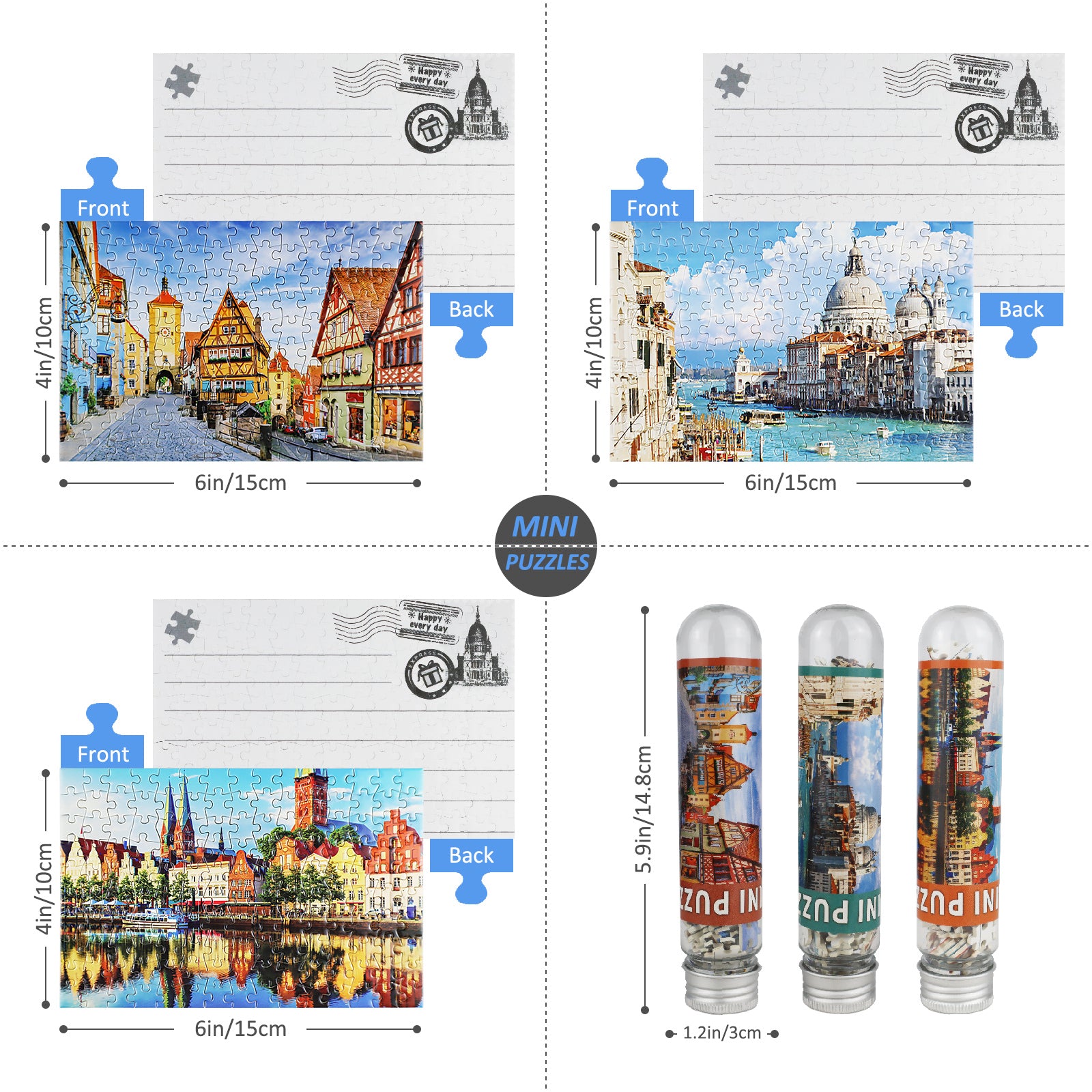 Mini Size 3 Pack 150 Pieces Puzzles for Adults European Landmarks Italy Germany 6 x 4 Inches